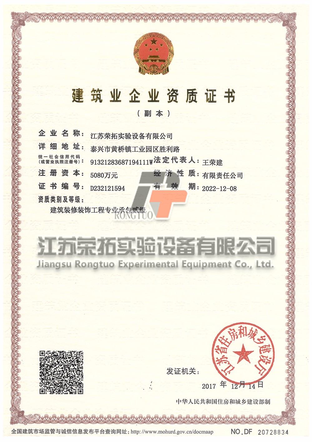 建筑裝修裝飾工程專業(yè)承包貳級(jí)