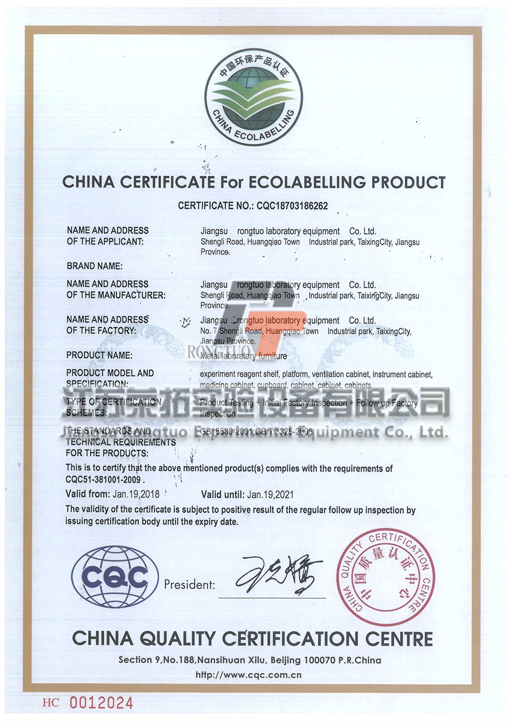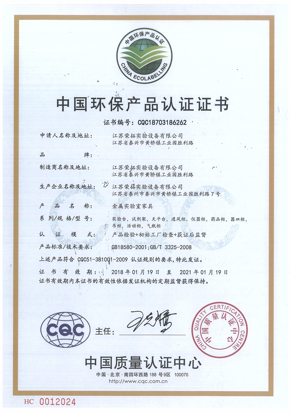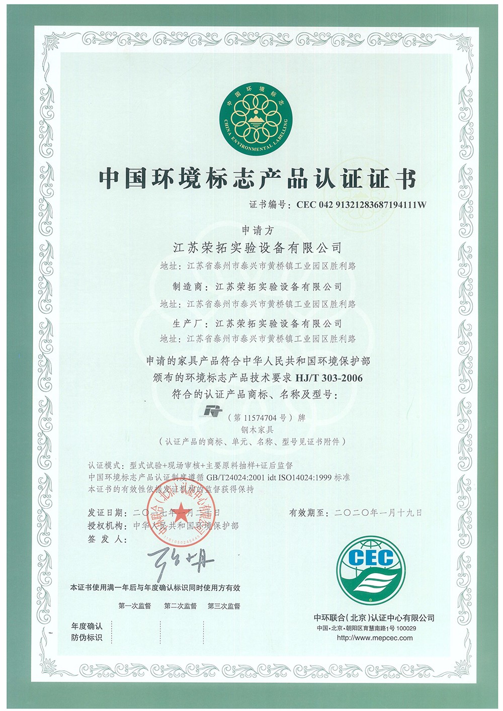 中國(guó)環(huán)保產(chǎn)品認(rèn)證證書中文