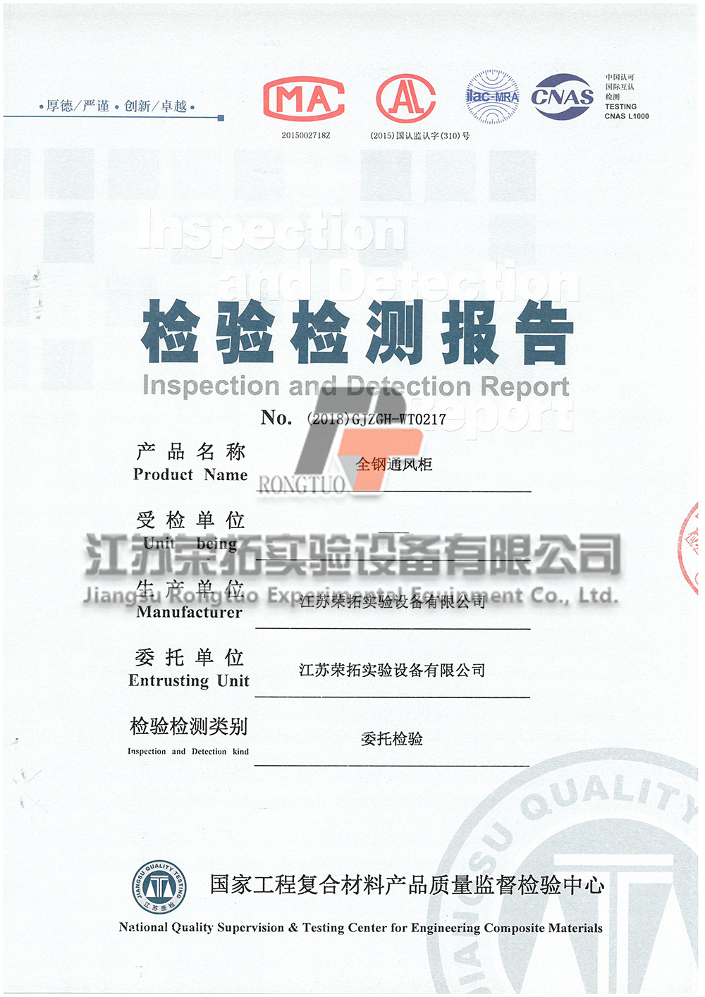全鋼通風(fēng)柜檢測(cè)報(bào)告