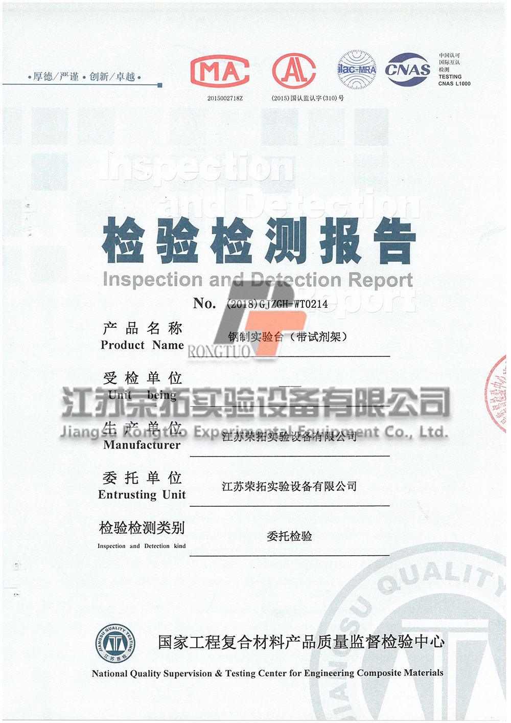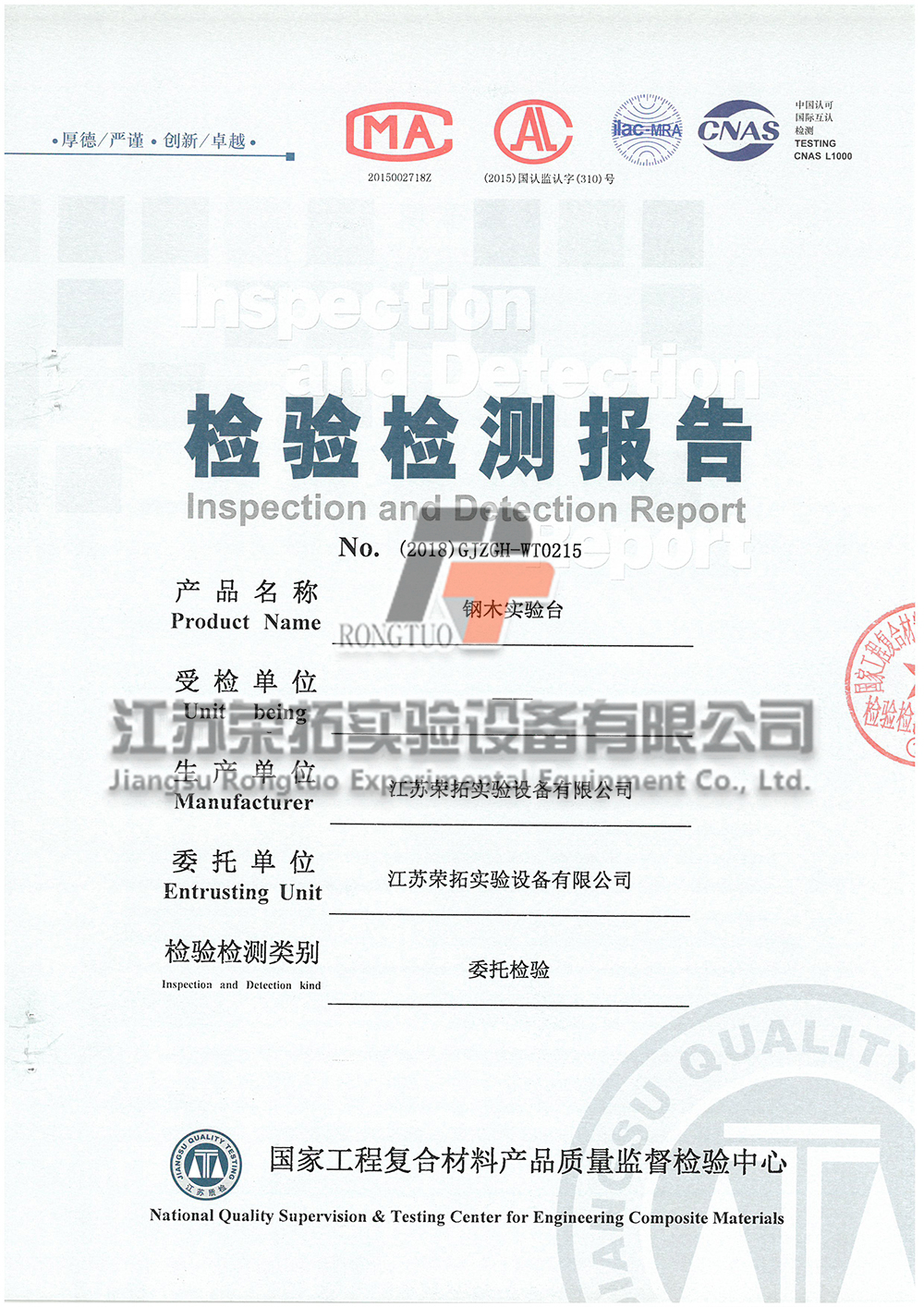 鋼木實(shí)驗(yàn)臺(tái)檢測(cè)報(bào)告