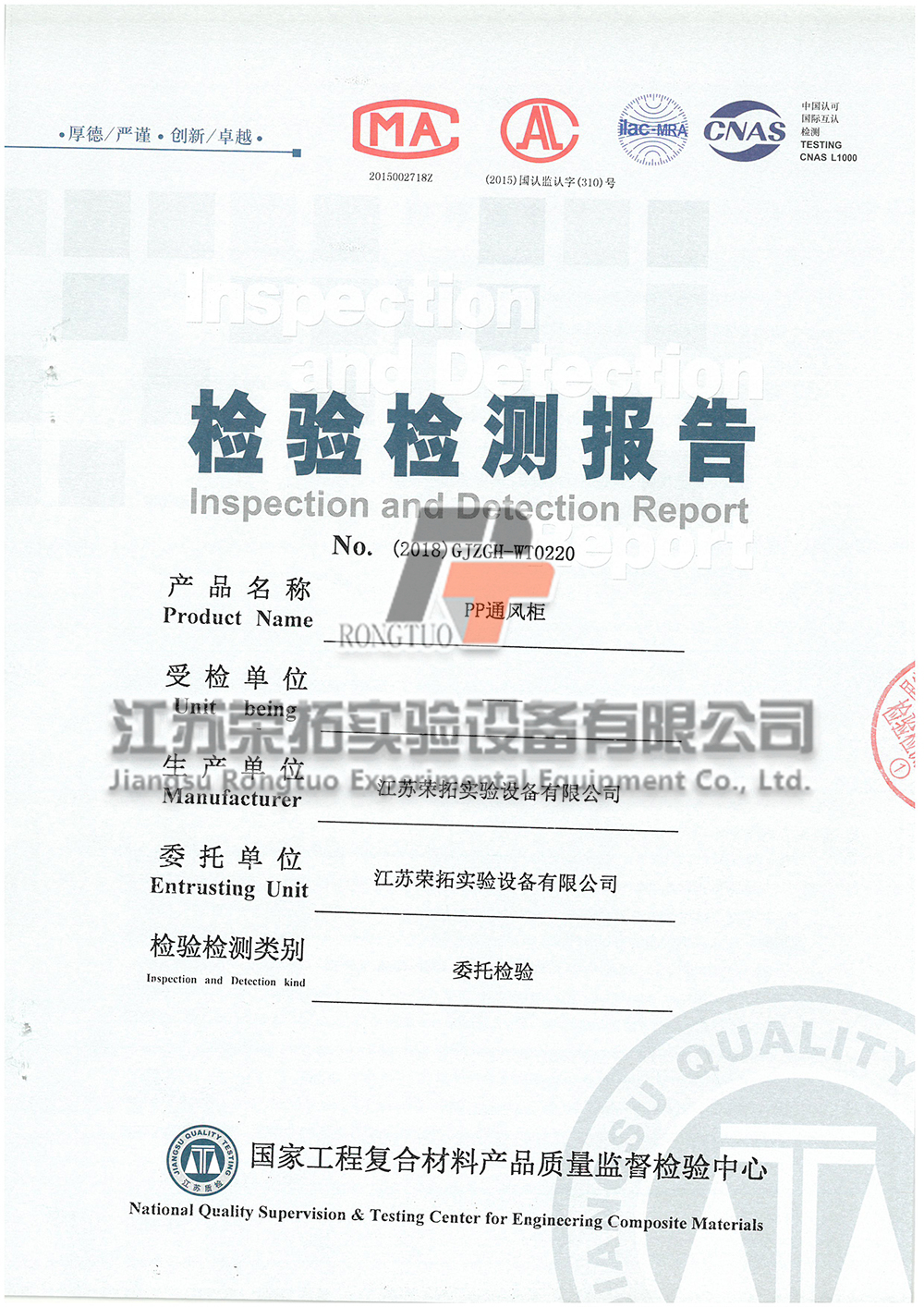 PP通風(fēng)柜檢測(cè)報(bào)告